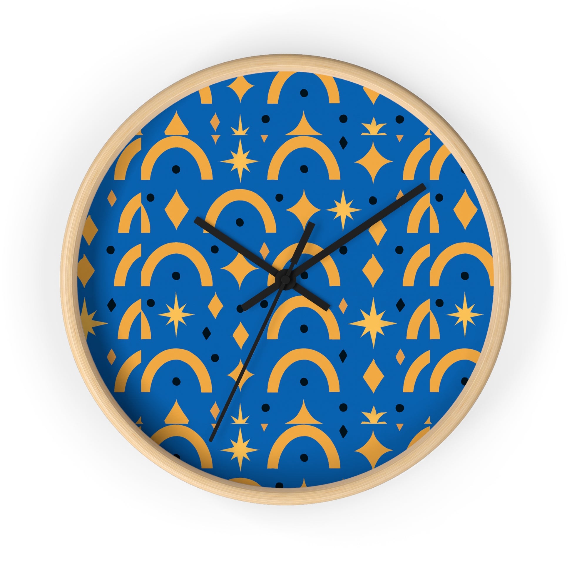 Bright, bold, and totally mood-lifting — this wall clock brings a burst of modern-retro energy into your space. Set on a deep cobalt blue backdrop, the golden arches, stars, and abstract shapes create a playful yet luxurious vibe. It’s the kind of design that makes a room feel instantly brighter, happier, and more put-together without even trying.