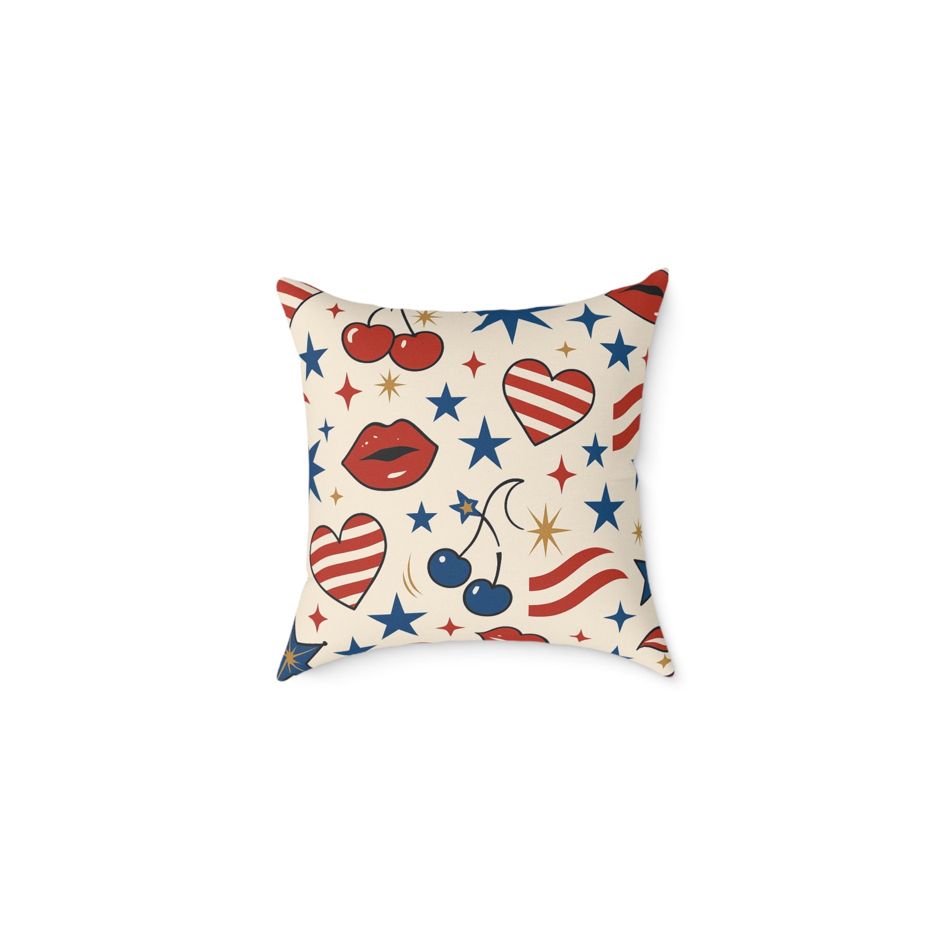 The warm cream backdrop paired with deep navy, bright red, and sunset gold tones creates a chic retro aesthetic that instantly elevates any room. Whether it’s on your sofa, bed, reading nook, or office chair, this pillow brings personality, charm, and star-spangled attitude to your space.