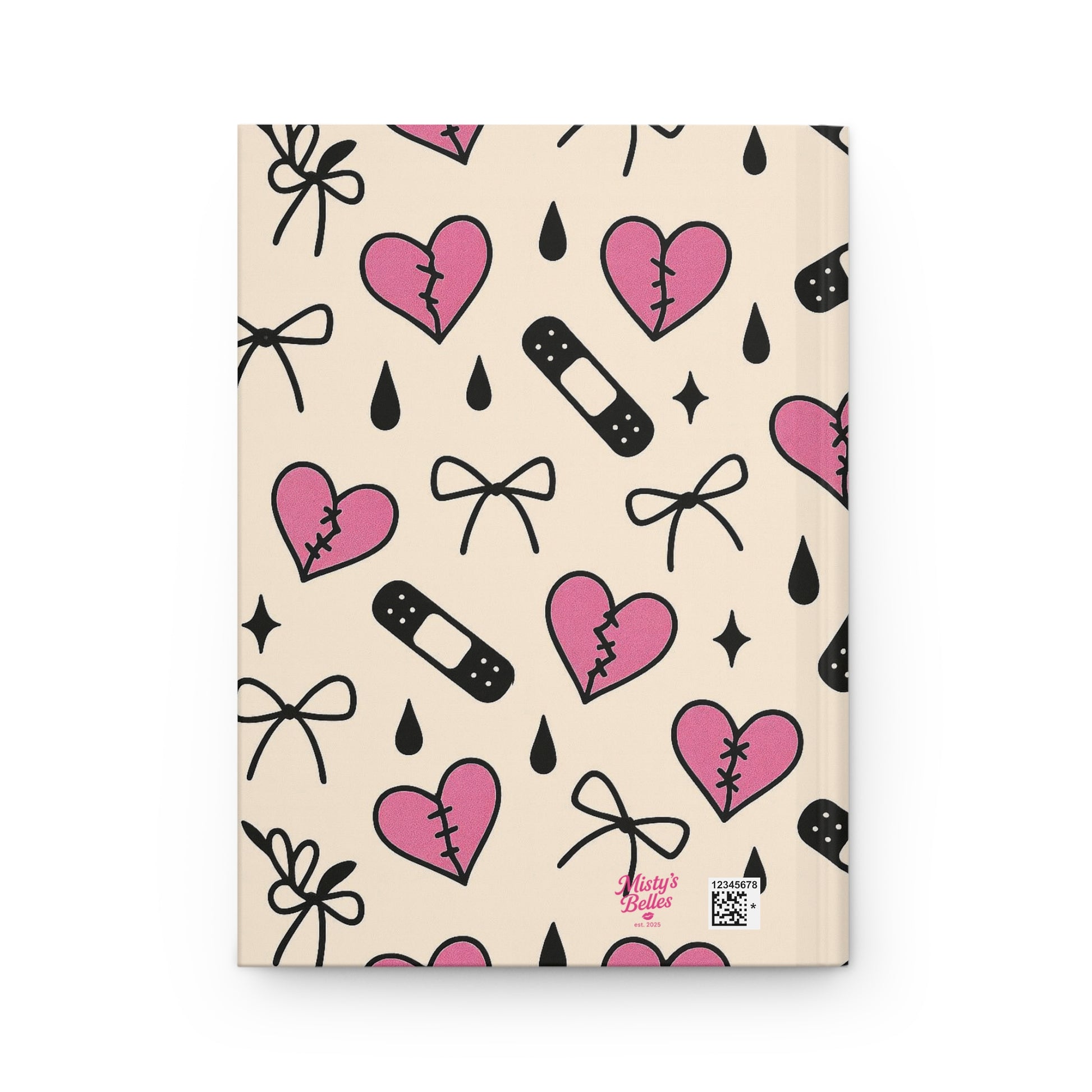 Sweet on the outside, unpredictable on the inside — this limited-edition Suki Belle journal captures her Innocent Rebel spirit in the cutest way possible. Covered in Suki’s signature icons — stitched pink hearts, tiny bows, healing bandages, and dripping black teardrops — this print is for the girls who feel everything deeply but still stay adorable doing it.