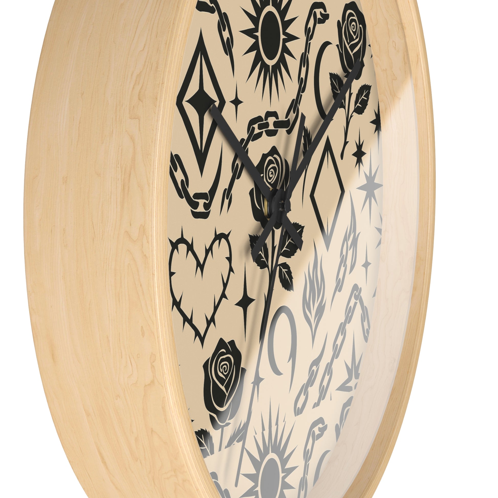 This premium wall clock features Rae’s signature “Shadow Mark” motif: a hypnotic blend of alt mysticism, tattoo-inspired icons, and bold energy wrapped in clean, modern design.