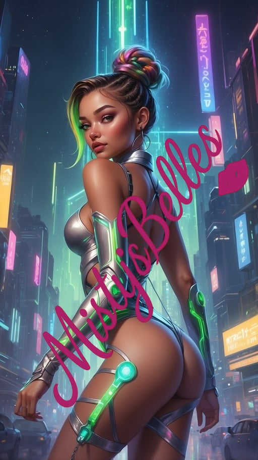 Unleash the future with Nova Belle’s Neon Siren wallpaper 💜💚💙.