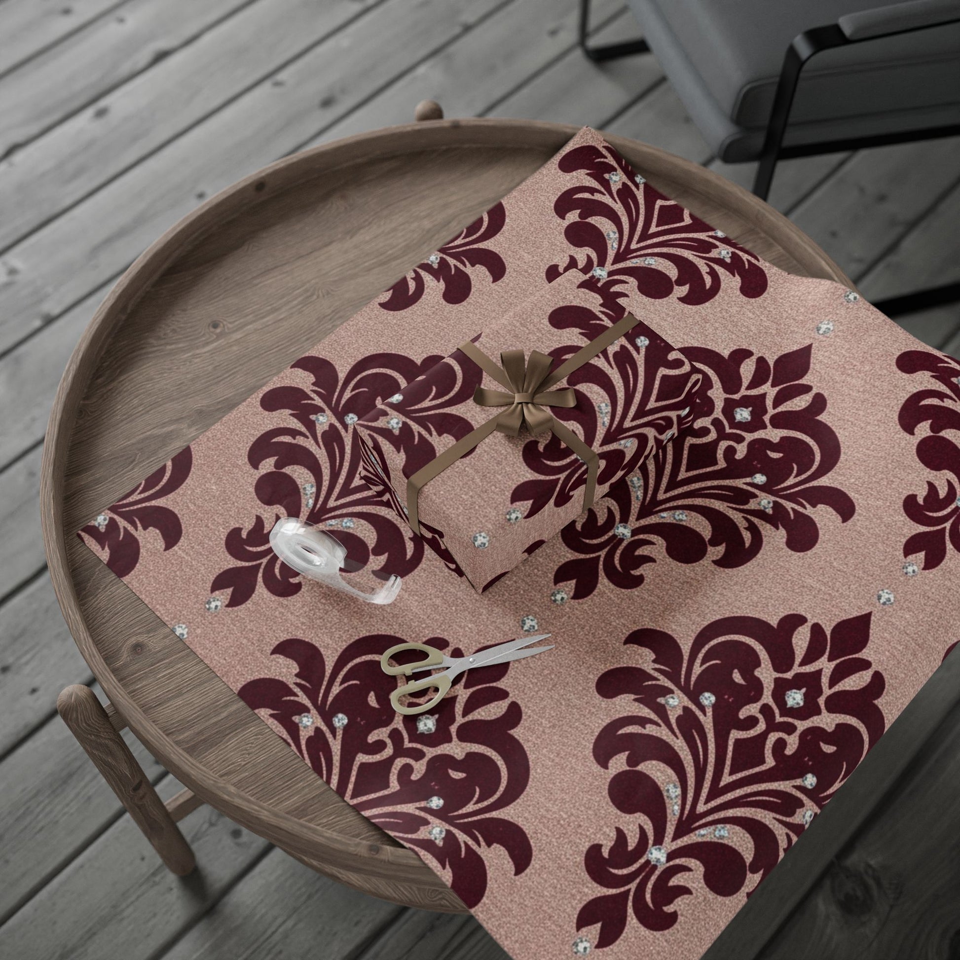 Luxurious wrapping papers featuring a gilded brocade design in red, perfect for festive occasions. Give your gifts an elegant touch with these high-quality papers. Ideal for individuals looking to add a touch of sophistication to their gift-giving.