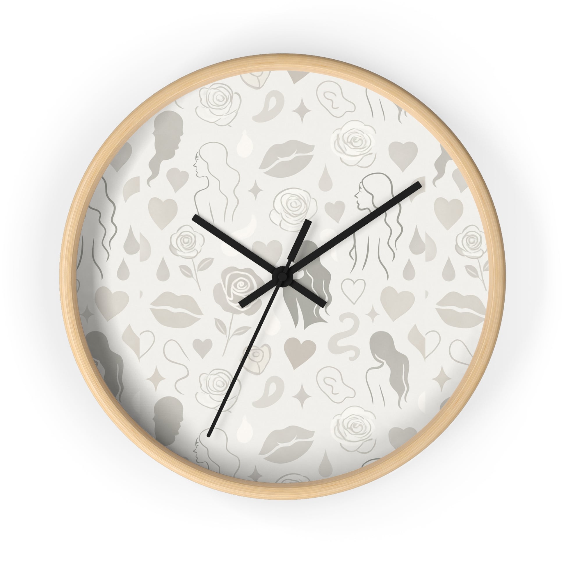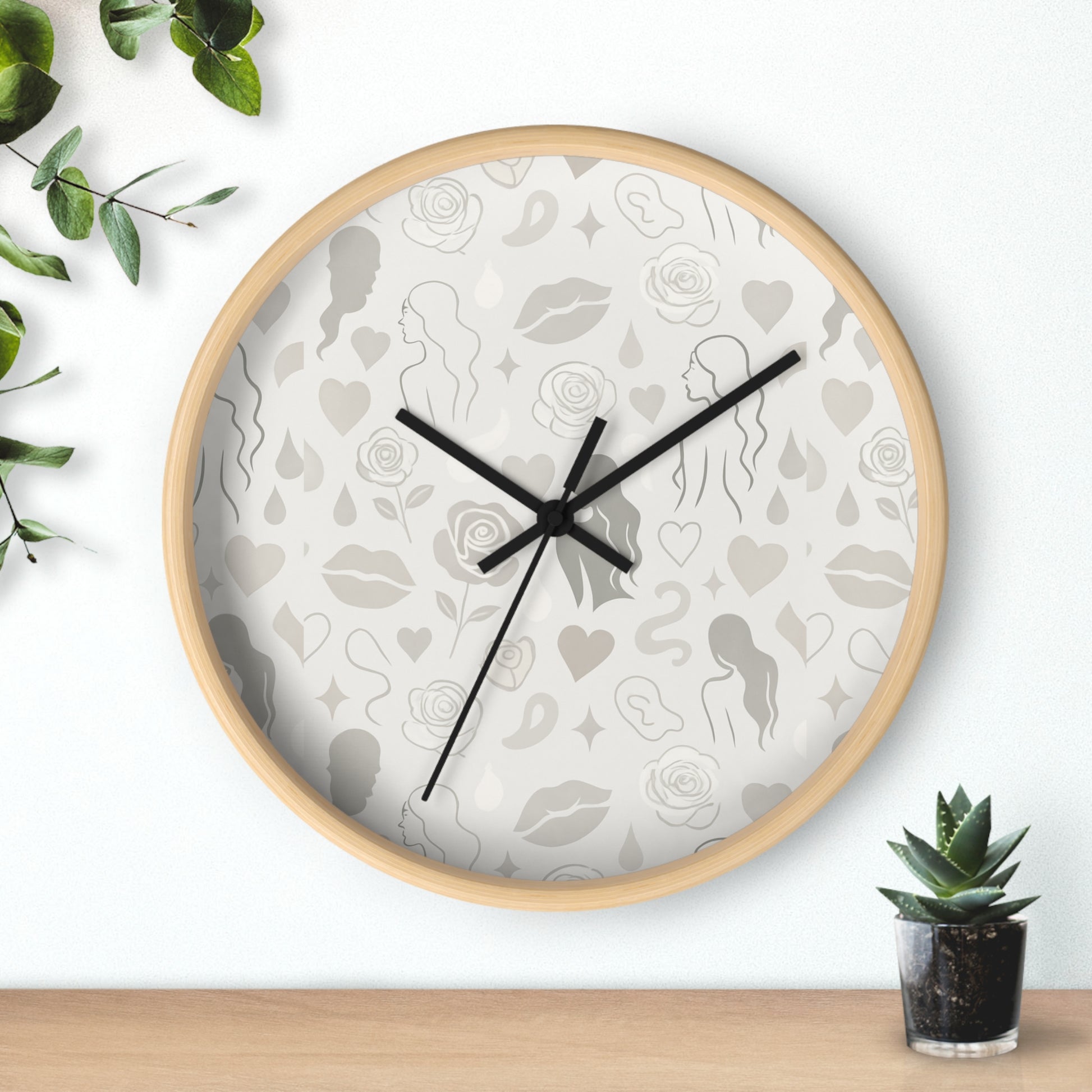 Elevate your space with the Silk Aura Whisper wall clock — a soft, dreamy blend of Yara’s signature elegance and cool minimalism. This design features flowing feminine silhouettes, roses, hearts, and abstract accents in gentle gray and silver tones, creating a calm, luxurious atmosphere without overpowering your decor.